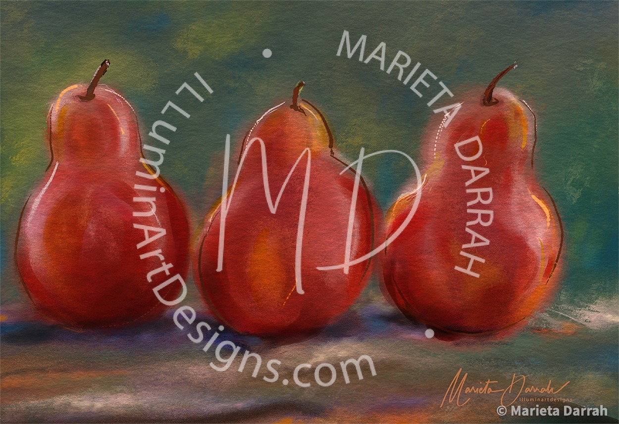 3 Pear Drawing, Pear Drawing, Pears In The Fall, Pears In The Fall Color, Pears Painting, Pears Still Life, Red Pears Art, Red Pears Artwork, Red Pears In The Fall, Red Pears Painting, Three Pears, Three Pears Drawing, Three Pears Illustration, Three Pears Painting