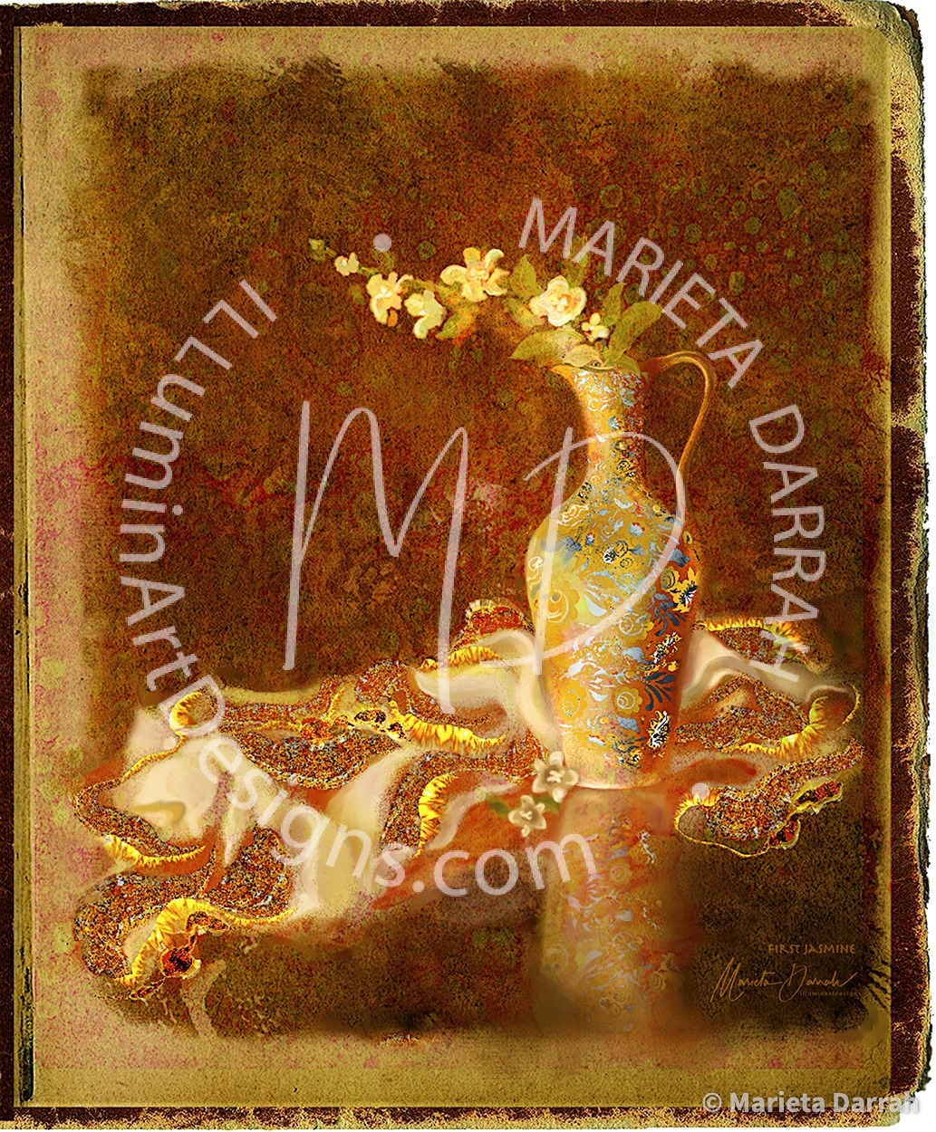 It’s not summer yet officially, but the fragrant jasmine blossoms in my garden remind me that the brightest, warmest season is almost here. This painting is a celebration of summer and all the yang energy it brings. The colors are bright, golden like, and it looks like this is a picture found in an old book full of someone’s happy childhood memories of flowers, butterflies, and much laughter. Could this be my own book?
